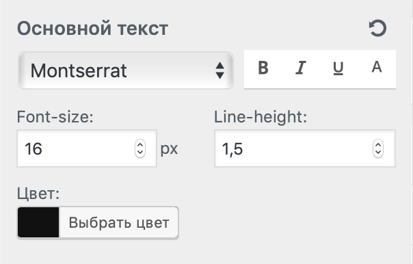 Говорит сама за себя — настраиваем шрифты, размер, стили, цвет у различных элементов сайта. Пришлось даже свой кастомный контрол для этого разработать, выглядит он так: